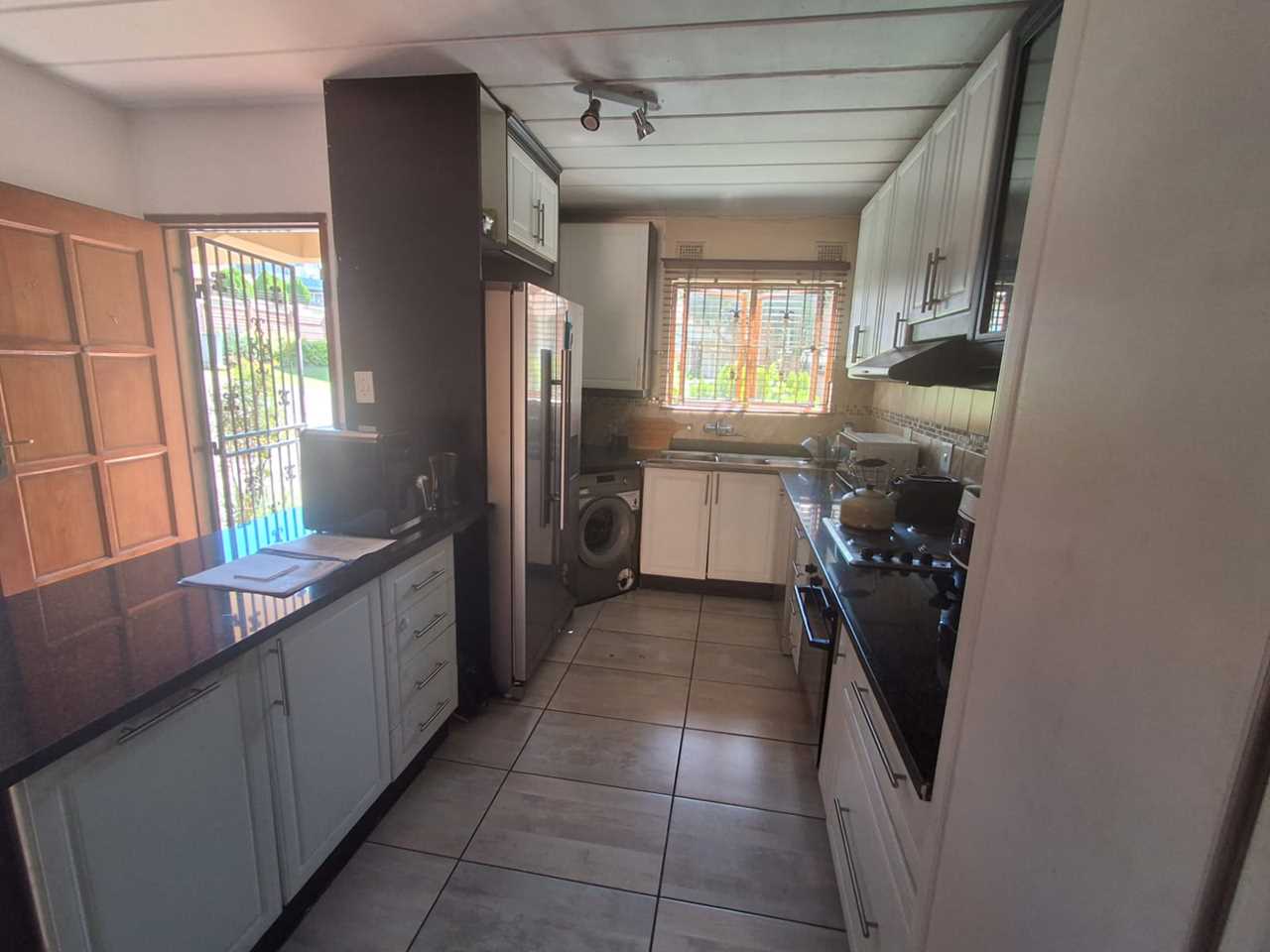 Open-plan lounge and kitchen. The kitchen is stunning - with plenty cupboards, space for washing machine and dishwasher, and granite counter tops