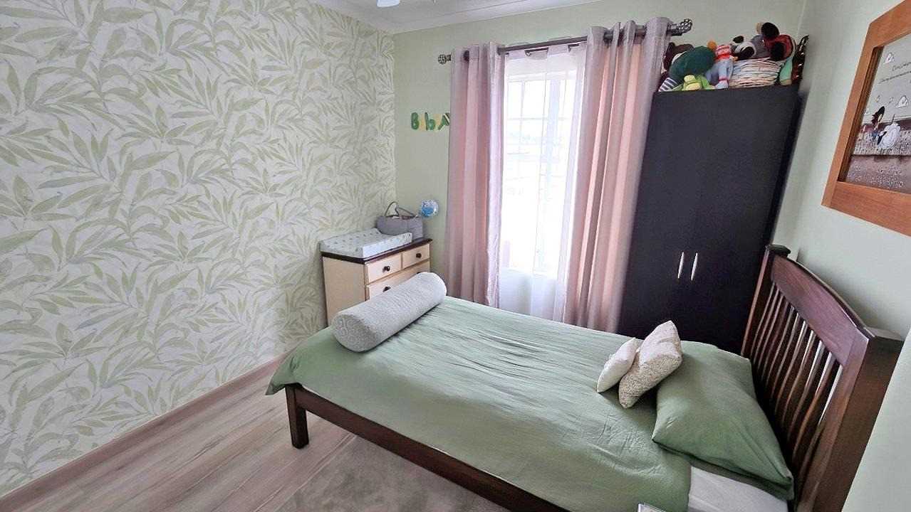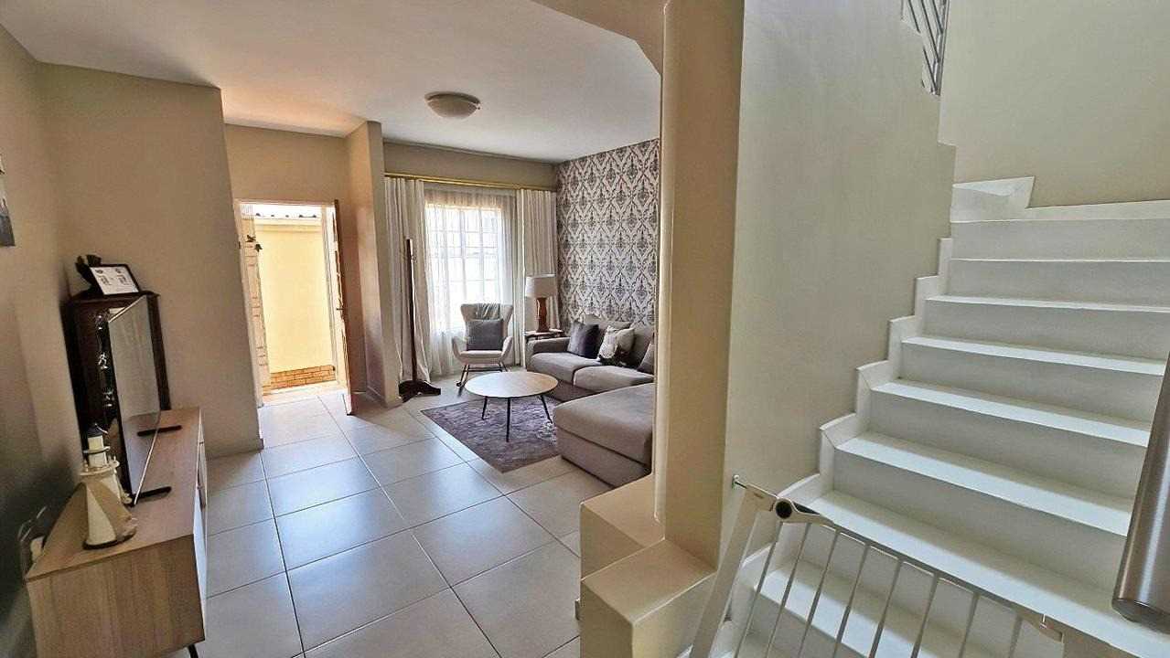 Downstairs: Open-plan lounge flowing into a modern kitchen featuring a gas stove, ample cupboards, and a pantry. Seamless access to a covered patio and private garden—perfect for entertaining or quiet outdoor moments.